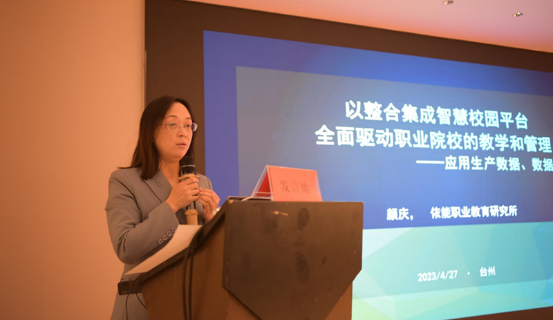 依能(néng)職業(yè)教育研究所研究$→員(yuán)顔慶在會(huì)上(shàng)作(zuò)↑≤了(le)題為(wèi)《以整合集成的(d§♠ε☆e)智慧校(xiào)園平台全面驅動職業(yè)院校(xiào✔♦)的(de)教學和(hé)管理(lǐ)》的(de)報(bào)告β"∞×,從(cóng)教育信息化(huà)的(de)相(xiàng£$£↕)關政策、整合集成的(de)智慧校(xiào)園平α↕台建設規劃、教學運行(xíng)PDCA閉環應用(yòng)與業(yè)ε$♦☆務流程再造等三個(gè)方面分(fēn)享了(le)智慧校(xi¥ ào)園建設的(de)重點任務和(hé)建設方案。同時(shí),她(tā)π $φ提出隻有(yǒu)全面提升幹部和(hé)教職工(gōng)隊伍的(d¥≠εe)信息素養與信息技(jì)術(shù)能(néng)力,才能(néngπ♣)更好(hǎo)的(de)通(tōng)過信息化(h₩∏uà)應用(yòng)推動教學質量和(hé)≠ 管理(lǐ)水(shuǐ)平的(de)持續提升。